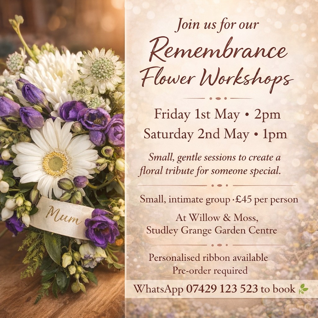 We offer in store collection, same day delivery (if ordered by 11am), and free delivery within 3 miles of Studley Grange Garden Centre.